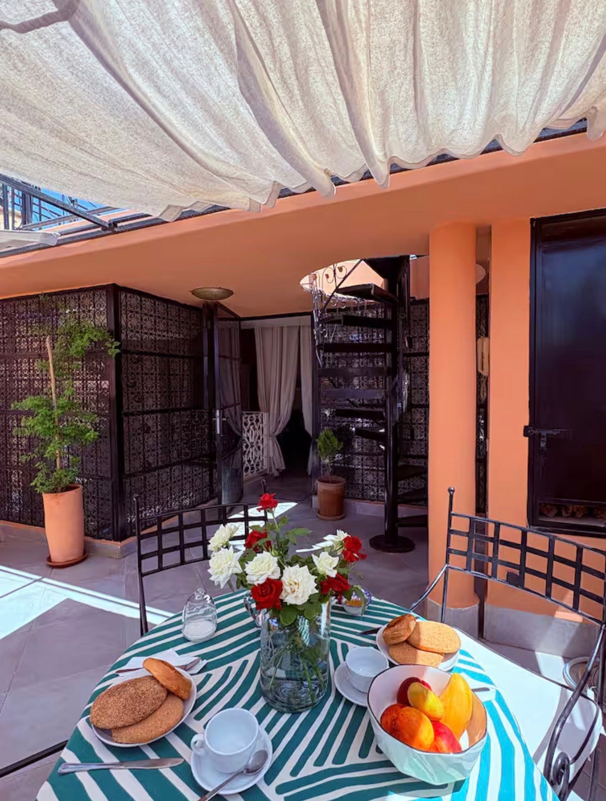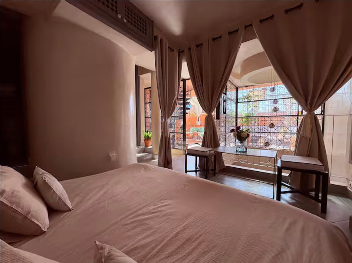 Le Riad est loué dans son intégralité pour 5 personnes maximum et n’acceptera aucune personne supplémentaire sous peine d’annulation de la réservation aux frais du locataire.